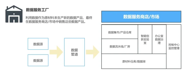 数据中台,可以把它想象成一个数据服务工厂,核心功能是将原始数据转化为对企业有价值的、可复用的数据智能服务。为了方便理解,我们对物理世界里工厂的概念,把数据中台的概念抽象和分解一下。
